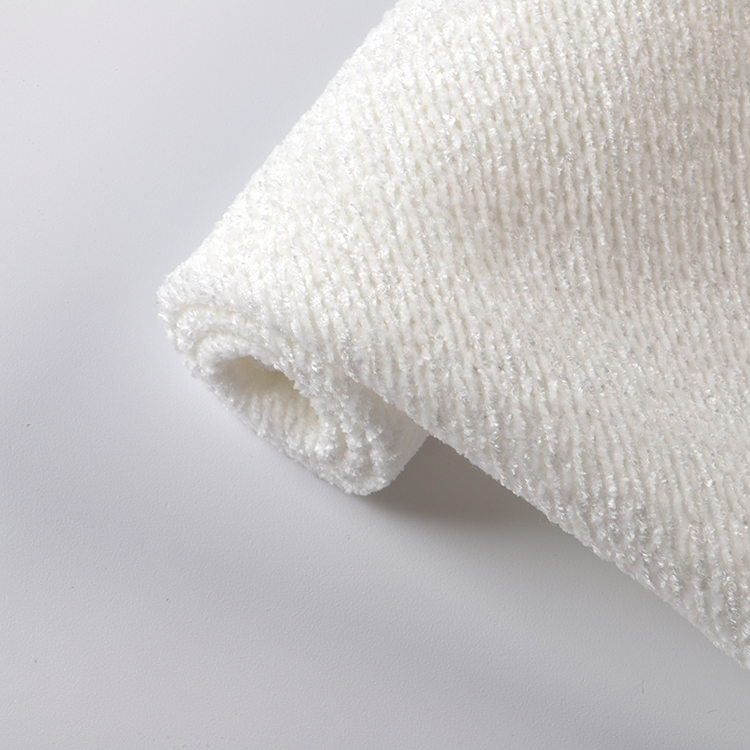 ผ้าเชนวิลล์กริดที่เรียบของเรามีสีขาว PRISTINE เพิ่มรูปลักษณ์ที่สะอาดและซับซ้อนให้กับผลิตภัณฑ์ของคุณ ด้วยปริมาณการสั่งซื้อขั้นต่ำ 500 กิโลกรัมต่อสีเราตอบสนองความต้องการการผลิตขนาดใหญ่ได้อย่างมีประสิทธิภาพ ผ้าบรรจุด้วยม้วนอำนวยความสะดวกในการจัดการและการจัดเก็บง่าย