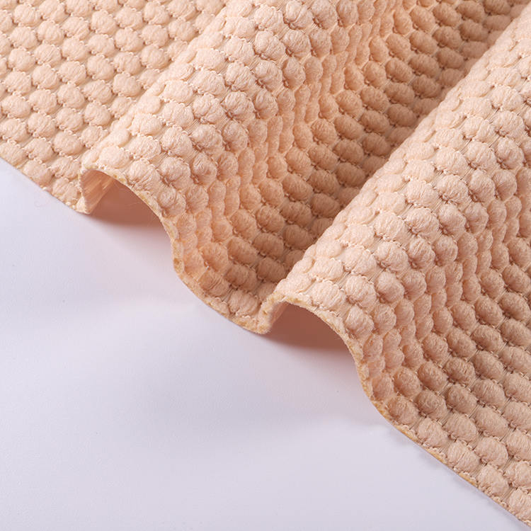 สิ่งที่ทำให้ผ้าฟองสบู่สามมิติของเราแตกต่างกันคือความสูงของกอง 4 มม. ที่โดดเด่นสร้างเอฟเฟกต์สามมิติที่สัมผัสได้และโดดเด่นด้วยสายตา ไม่ว่าจะใช้สำหรับพรมพรมหรือเสื่ออาบน้ำผ้าถักนิตติ้งนี้แสดงให้เห็นถึงความมุ่งมั่นของเราในการใช้เทคนิคขั้นสูงและงานฝีมือที่พิถีพิถัน สีย้อมที่แข็งแกร่งของมันนำเสนอความมีชีวิตชีวาที่ยั่งยืนตอบสนองความต้องการด้านสุนทรียภาพของแบรนด์และผู้บริโภคที่ฉลาด